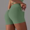 Whether you’re into yoga, running, or other sports, these shorts are perfect. The cross v waist design provides a snug and flattering fit, while the pocket adds a practical touch for carrying small essentials.